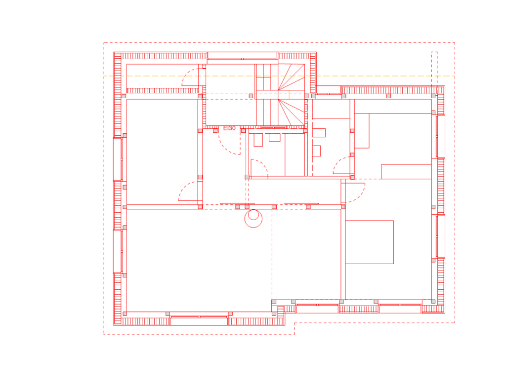 La maison est surélevée afin de créer un deuxième logement à l’étage supérieur. Une nouvelle cage d’escalier prend place au nord. Ainsi, la configuration des étages est flexibles et ces derniers peuvent être rassemblés en un seul logement. Le lieu de vie au rez-de chaussée est réaménagé et l’espace séjour – cuisine devient ouvert. Deux fenêtres sont également agrandies pour bénéficier de la vue sur les préalpes fribourgeoises.